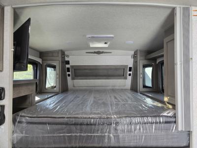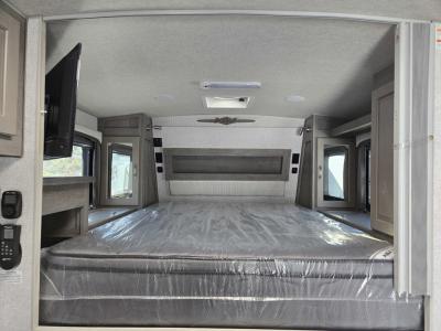 The truck campers are built with fully welded, thick-wall aluminum frame construction with a one-piece, corona treated, continuous fiberglass, and include high density foam block insulation. The interior provides roller bearing drawer glides, fabric night shade window treatments, USB charging ports on both sides of the bed to keep your cellphones ready.