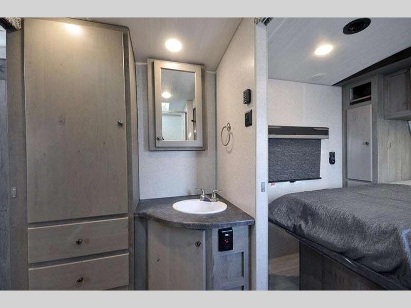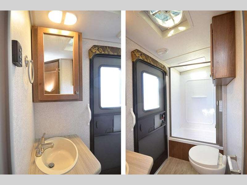 Each model includes a cathedral arched ceiling, roller bearing drawer glides, LED lighting, plus ample storage space for your personal belongings. Outside, you'll appreciate an exterior shower to wash off camp gear, along with a 12V LED awning with adjustable pitch for an inviting outdoor living space. Each model also includes the SolX 4-400 Watt Solar Package for off-grid capabilities!